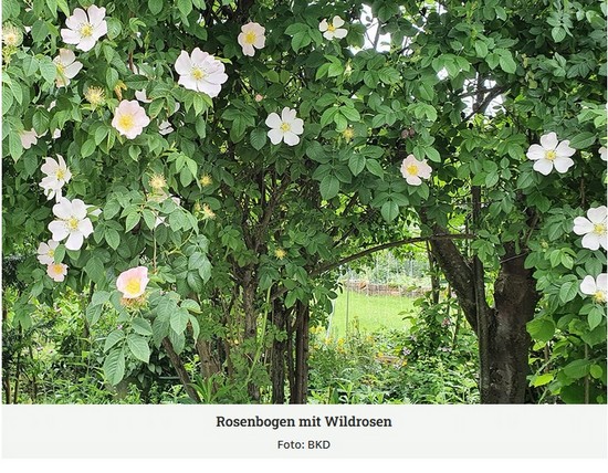 Ihre einfachen Blüten liefern reichlich Pollen und Nektar für Bienen und andere Insekten. Im Herbst entstehen Hagebutten, die Vögeln und Kleinsäugern als wichtige Nahrungsquelle dienen und sich zudem für Tee oder Marmelade eignen. Wildrosen fördern die Artenvielfalt, sind winterhart und benötigen wenig Pflege. Sie eignen sich als Hecken, Sichtschutz oder naturnahe Gartenelemente. Besonders empfehlenswert sind regionale Arten, da sie optimal an Standort und Klima angepasst sind. Wer zur Erhaltung der Biodiversität beitragen möchte, kann auch seltene oder vom Aussterben bedrohte Sorten pflanzen. So wird der Garten nicht nur attraktiv, sondern auch ein wertvoller Lebensraum.
